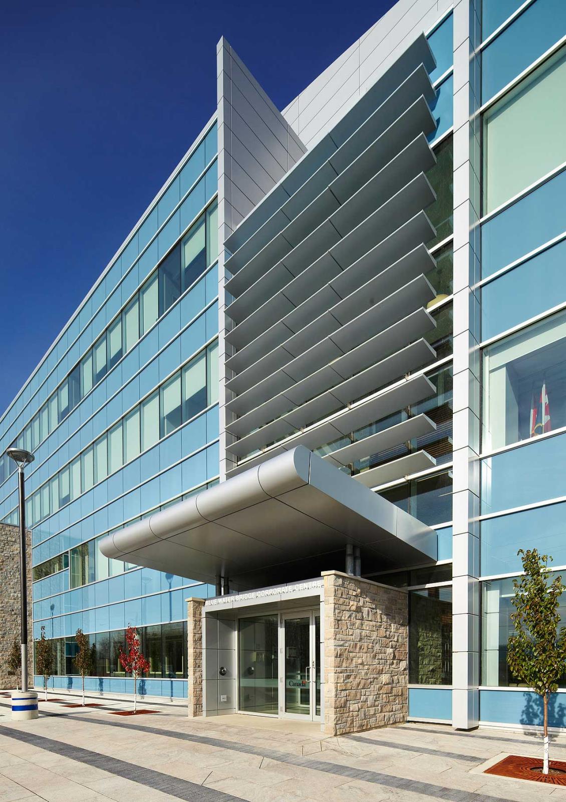 This 605,000 sq.ft. building integrates components into one building envelope with a central 3-storey atrium with intersecting bridge elements serving as a device to organize the agencies by programmatic functions, public access and secure operational requirements. The facility has achieved LEED® Silver certification and has implemented many sustainable design features such as: underwater cistern tanks for roof rainwater collection, solar water heating, and high efficiency mechanical and electrical systems.