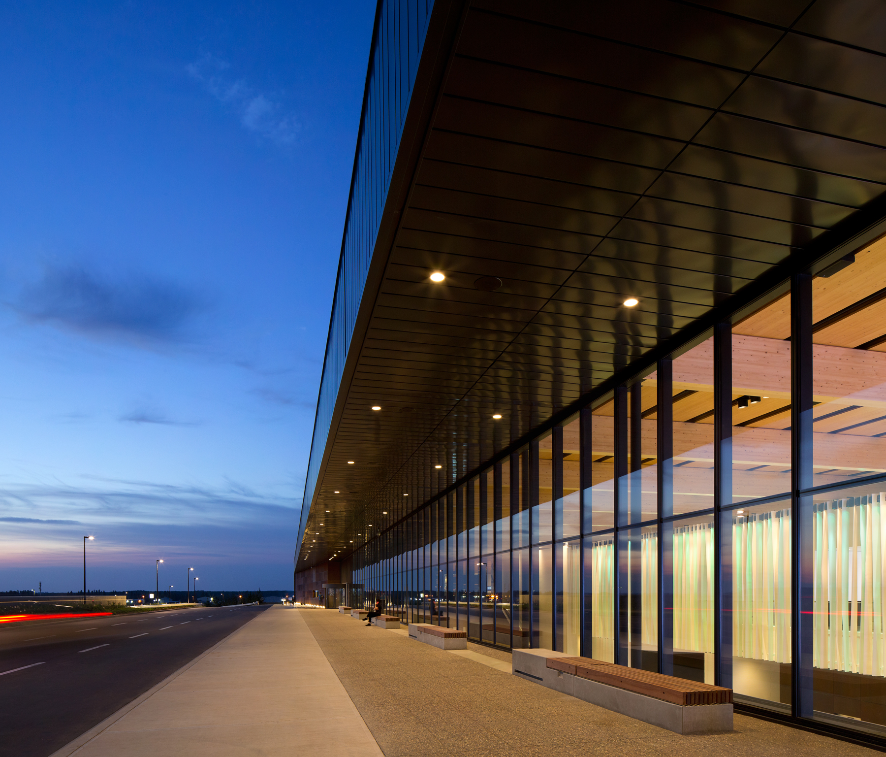 The Fort McMurray Airport opened in 2014 and showcases a beautiful, 3-story timber design that includes passive solar orientation, super-insulated building envelope assemblies, in-floor radiant heating, displacement ventilation, and sophisticated heat recovery systems. All materials used are low-emitting materials for a healthy interior environment. The timber design promotes the benefits of renewable-based wood solutions such as reduction in greenhouse gas emissions, reduced carbon footprint, superior thermal performance, and reductions in energy use. The airport was awarded the Governor General’s Medal for architecture in 2018.